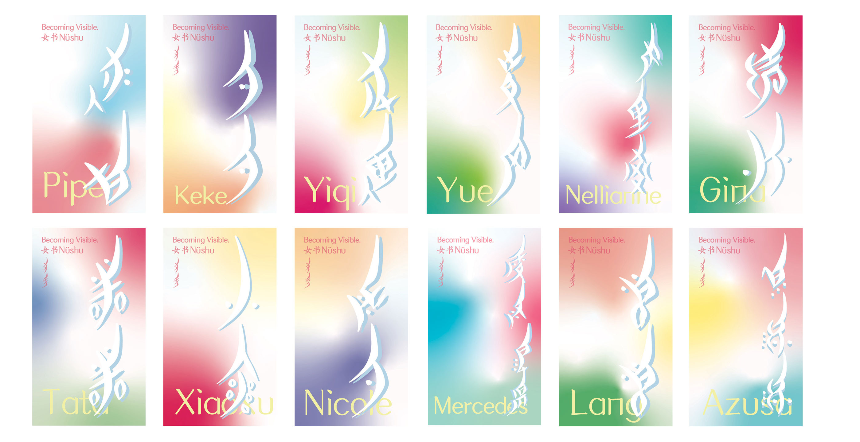 Is there a culture in this world created by women, for women, and belongs solely to them? As we pondered this question, Nüshu(女书) emerged in our research—a script unlike any other, the only known writing system in history designed and used exclusively by women. Yet, it stands on the brink of extinction. For centuries, women in Jiangyong County, Hunan Province, were excluded from formal education and denied literacy in the dominant Chinese script. In response, they created Nüshu—a secret language of solidarity, resilience, and self-expression. Written in delicate, rhomboidal characters on paper, textiles, and embroidery, Nüshu allowed women to document their stories, communicate in private, and carve out a space of intellectual and emotional freedom in a world that often silenced them. It was a quiet defiance against the prevailing power structures. When we asked those around us if they had ever heard of Nüshu, the answer was almost always no. This realization made our mission clear: to make Nüshu visible once more. In this project, we created personalized name cards inscribed in Nüshu for our classmates and professors in the Becoming Visible course. A name is one’s second face—a symbol of identity. Offering a name card, introducing oneself, and writing one’s name are all acts of becoming visible. Through this process, we hope to bring Nüshu back into the light, to give voice to a culture crafted by women, and to ensure that it is seen, remembered, and celebrated.