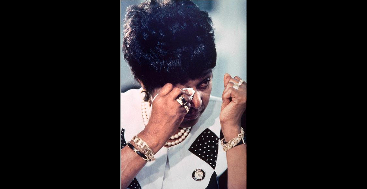 Winnie at the Truth and Reconciliation Commission where she testified at the hearing of brutal killing of Stompie Seipei in 1988