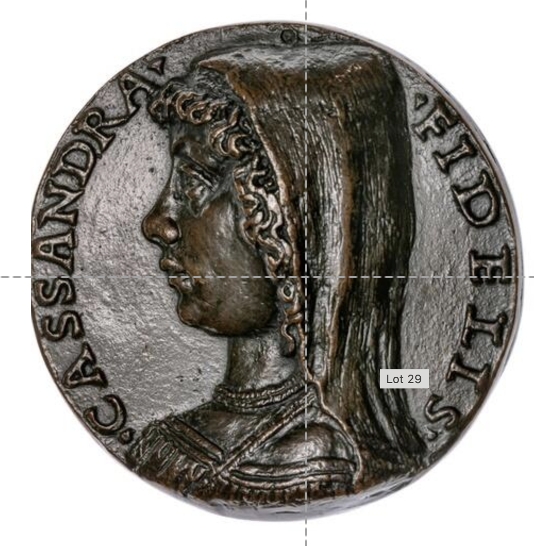 For example, Vincenzo Farinelli, in “Cassandra Fedele come Faustina”in the catalogue of the exhibition, Le Trecce di Faustina: Acconciature, donne e potere nel Rinascimento, 2023, proposed the connection of Cassandra’s distinctive hairstyle and appearance to images of the Roman Empress Faustina the Elder.