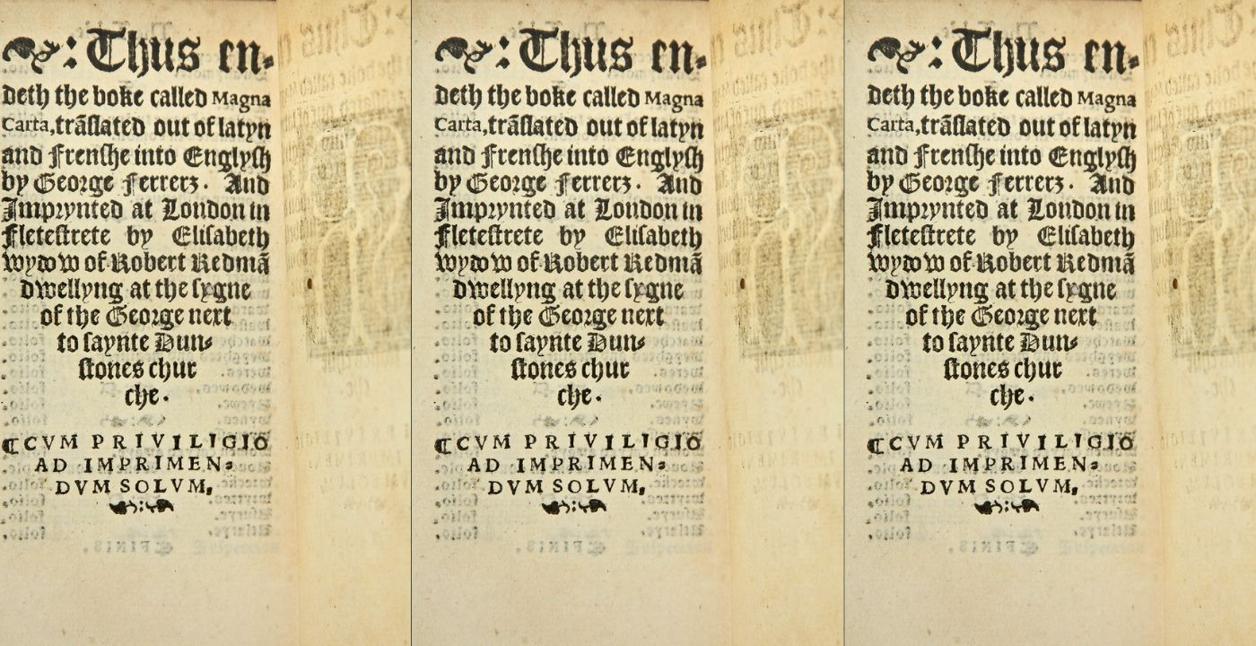 The Great Charter called in latyn Magna Carta. N.d. STC 9275.
