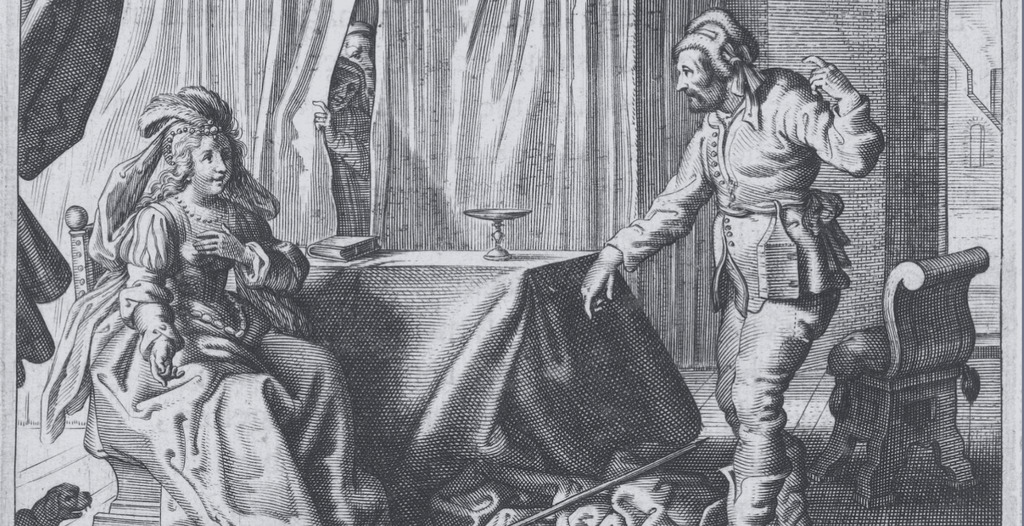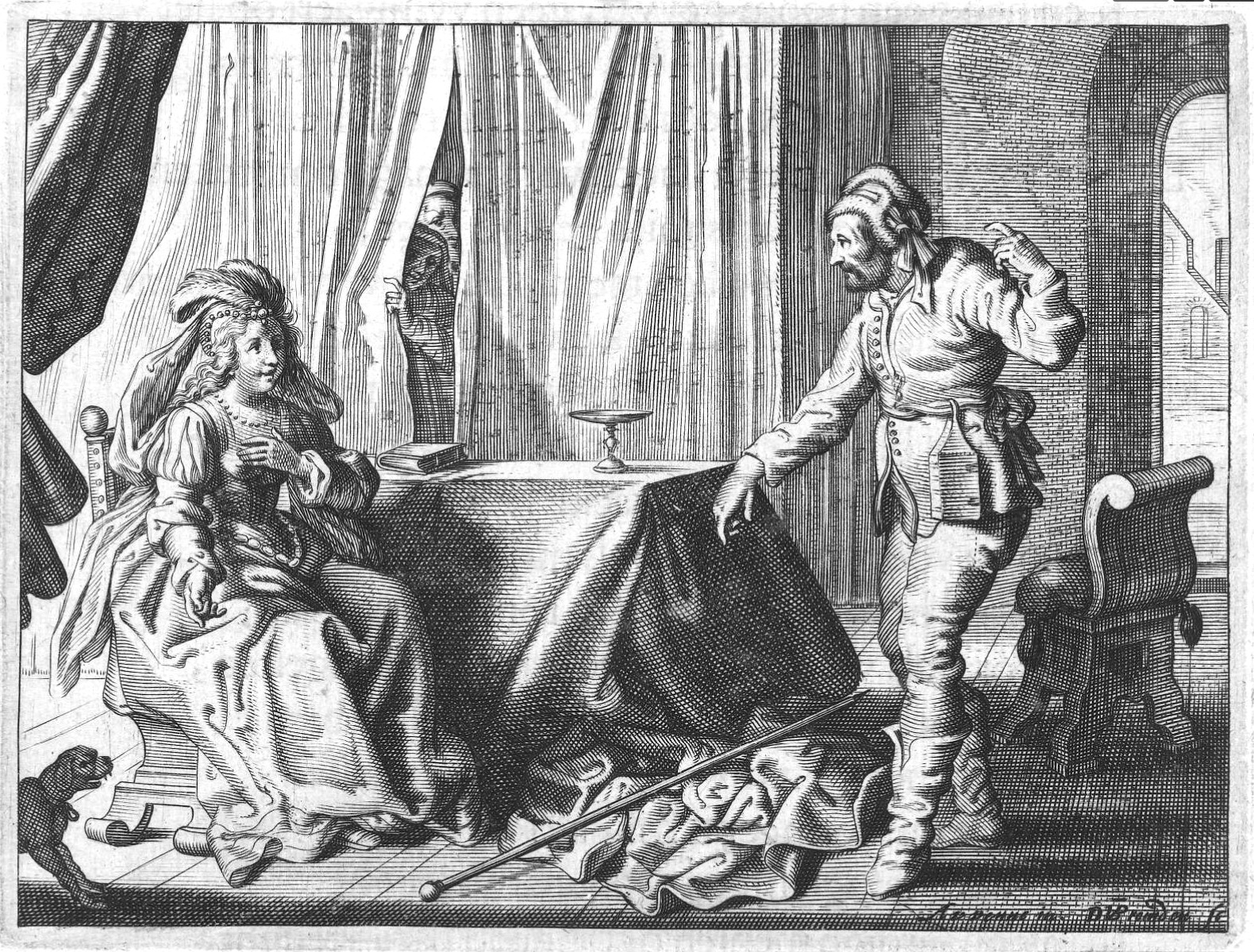 Illustration of Hipparchia and Crates wearing 17th century attire from the book Proefsteen van de Trou-ringh (“Touchstone of the Wedding Ring”) by Jacob Cats (1637), public domain. URL: