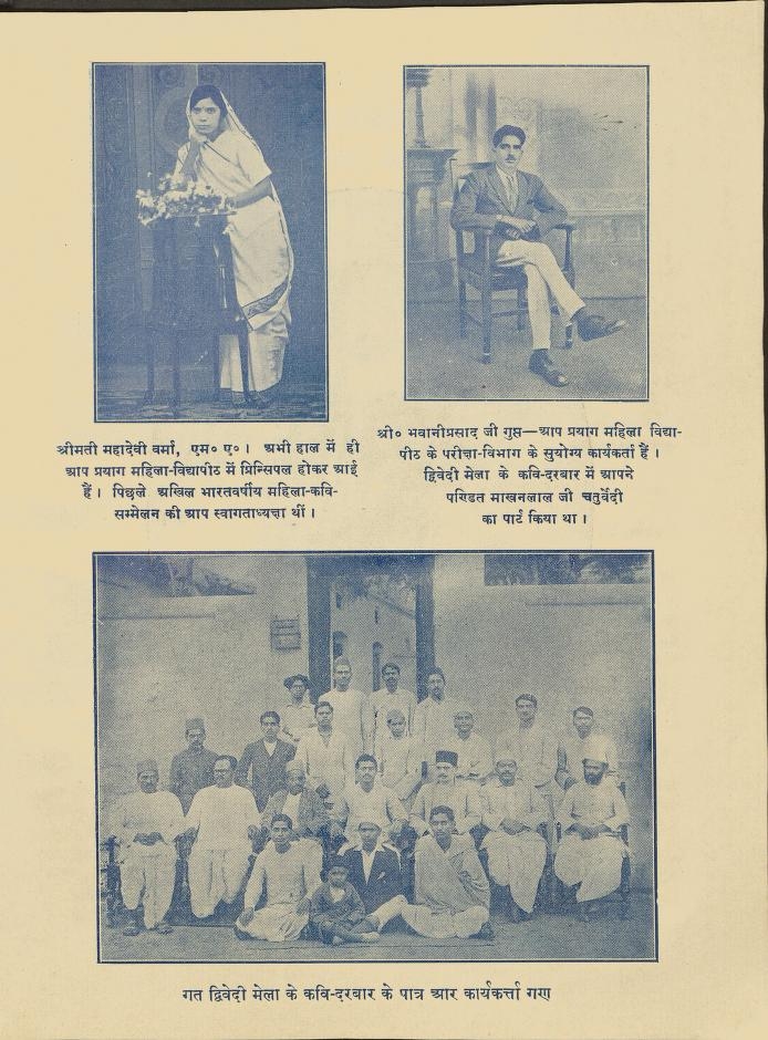 The Mahila Sahitya Sabha (Women’s Literary Association) of Prayag Mahila Vidyapeeth resolved to organise the All-India Women Poets’ Conference at Prayag on April 15, 1933, to be held in the auditorium/hall of the Vidyapeeth. The presidential speech was delivered by Subhadra Kumari Chauhan. Her poems included subjects such as “Jahansi ki Rani,” “Rajni (Night),” “Vishwavaichiva,” and “Achhoot.” The section ‘Problem Completion’ (samasya poorti) invited poets to respond to poetic prompts, such as (abla na janon ham sablayen hain) ‘don’t think we are weak; we are toughened women.’35