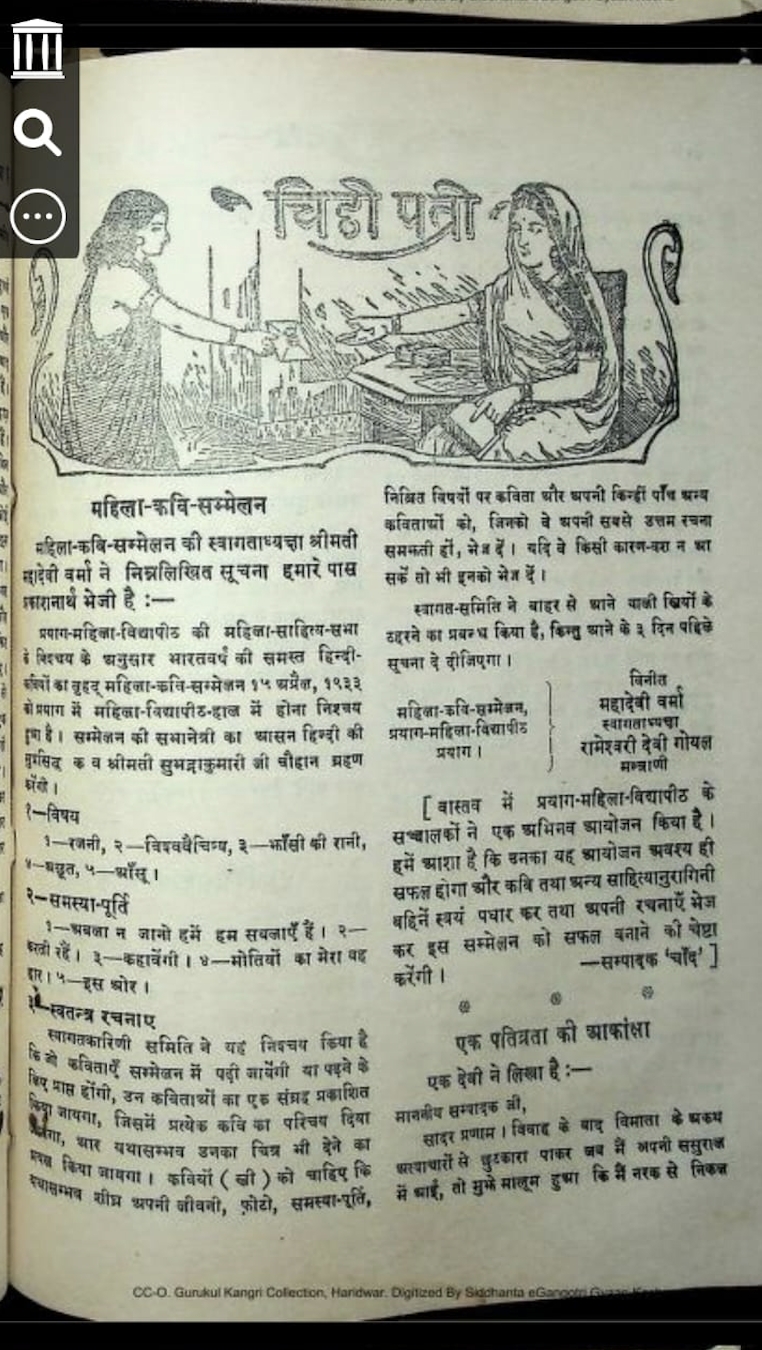 34. Chand. 1933. Chitthi Patri column: ‘Mahila Kavi Sammelan.’